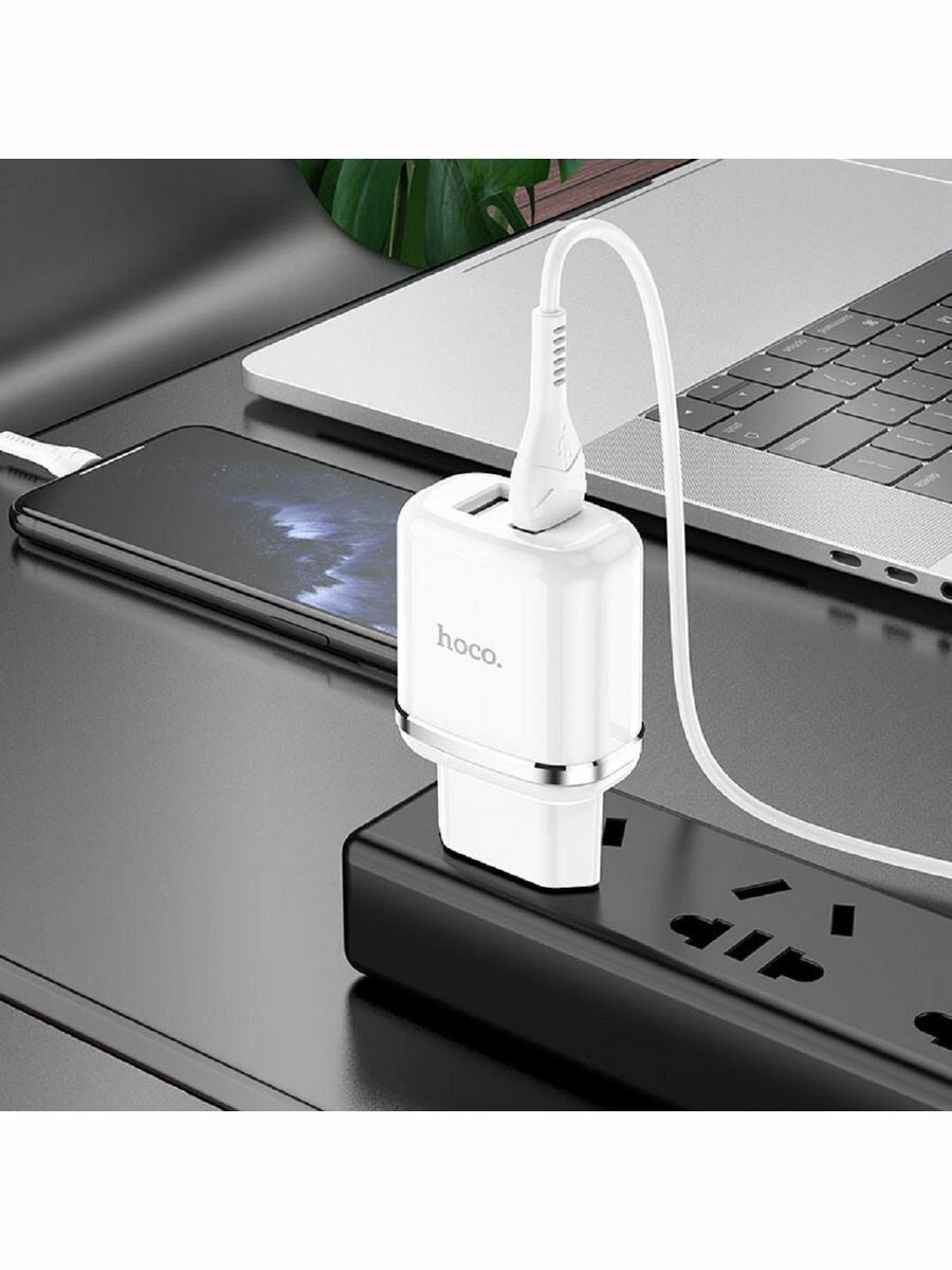 Купить Сетевое зарядное устройство Hoco N4, 2 USB - 2.4 А, кабель Type-C 1 м, белый Hoco 7687029