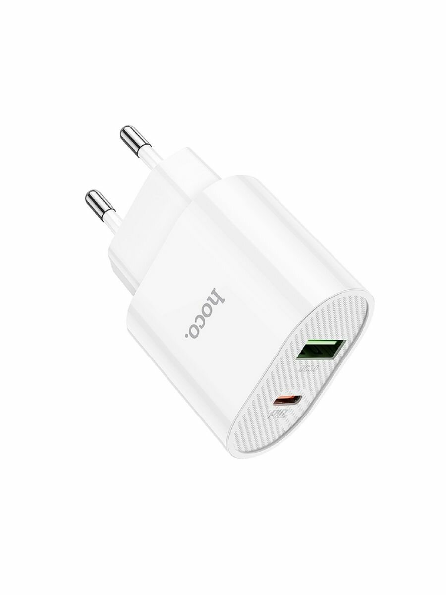 Быстрая зарядка Type-C и USB hoco / Хоко зарядка для iphone, на андроид, на айфон Type C / Сетевое зарядное устройство для телефона тип с / 2 гнезда