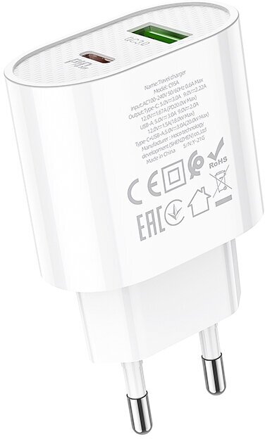 Сетевое зарядное устройство Hoco С95А + кабель Lightning-Type-C, 20 Вт, белый