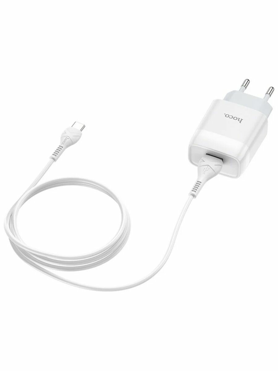 Сетевое зарядное устройство HOCO C72A Glorius single 1xUSB с Кабелем USB - Type-C, 2.1A, белый