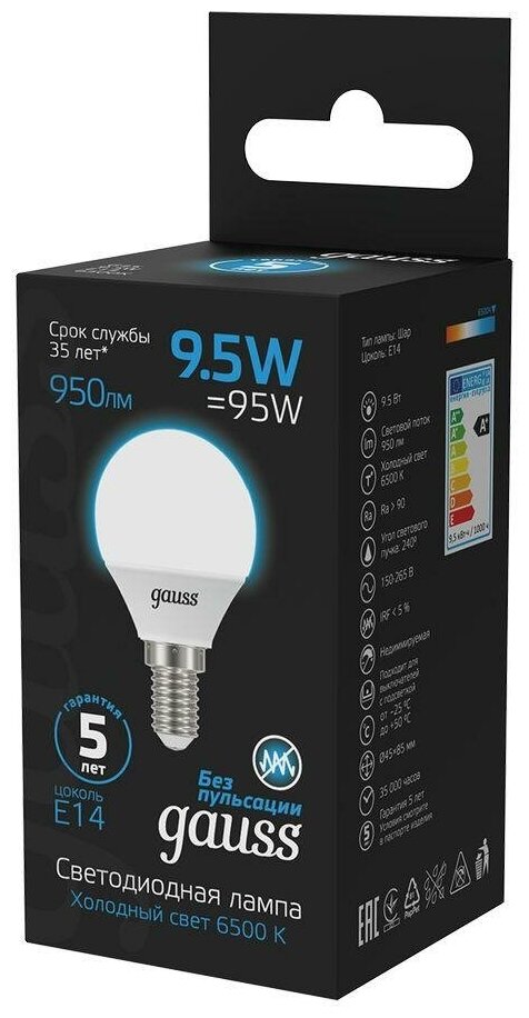 Ниже Вы можете прочитать отзывы на Лампа Gauss Black Шар E14, 9.5 Вт, 950ЛМ, 6500K, ознакомится с подробными характеристиками, посмотреть интересные обзоры и фотографии на Лампа Gauss Black Шар E14, 9.5 Вт, 950ЛМ, 6500K.