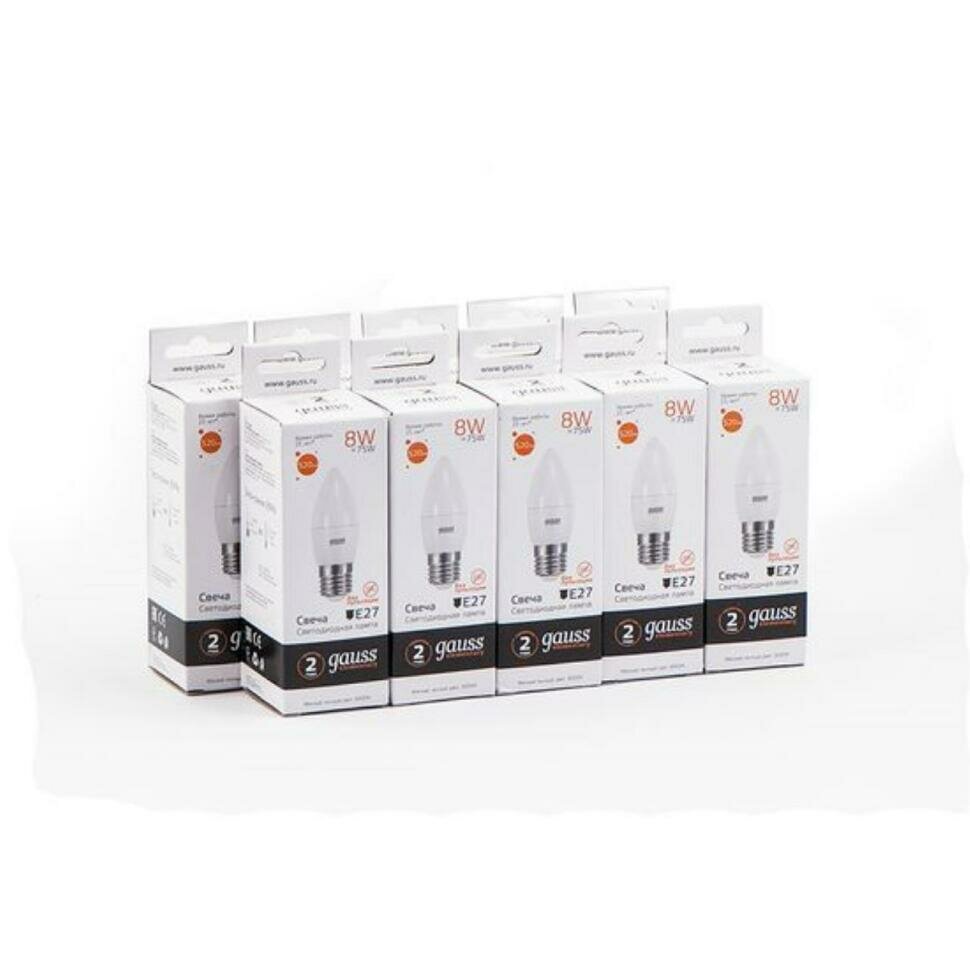(9 шт.) Светодиодная лампочка Gauss Candle С37 8Вт 150-265В 2700K/3000К E27