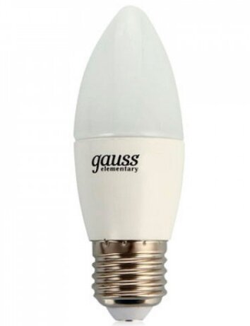 Лампа Gauss Elementary Свеча 8W 520lm 3000K Е27 LED 1/10/100 2 шт