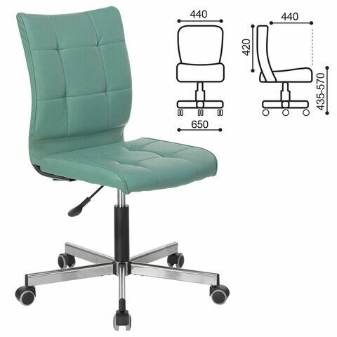 Кресло BRABIX "Stream MG-314", без подлокотников, пятилучие серебристое, экокожа, серо-голубое, 532079