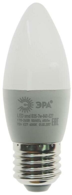 Купить ЭРА Б0020540 Лампа светодиодная ЭРА LED B35-7W-840-E27 (диод, свеча, 7Вт, нейтр, E27),