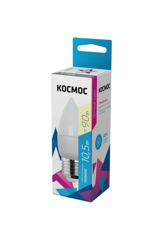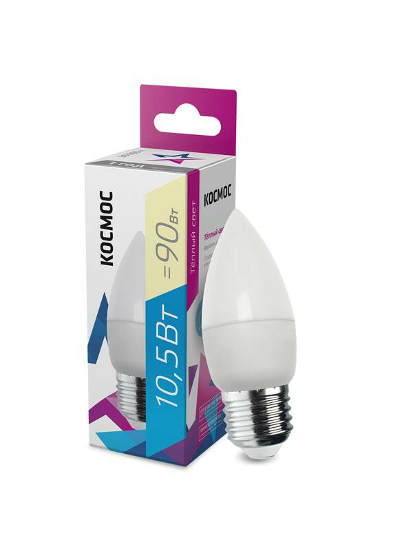 Светодиодная лампа Космос, 10.5 Вт, E27, 3000 K, свеча, LED10.5wCNE2730, теплый белый