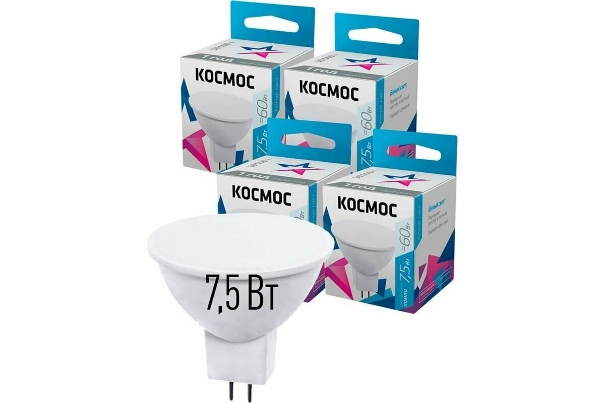 Лампа светодиодная КОСМОС Экономик 4500K, GU5.3, JCDR, 7.5 Вт, 4500 К