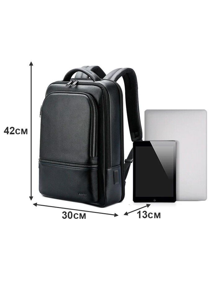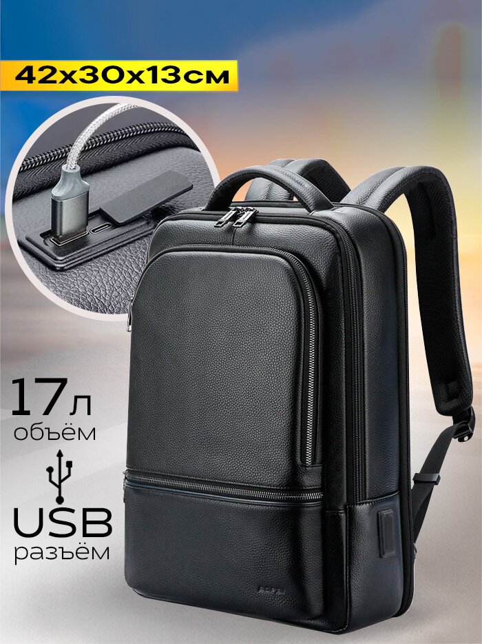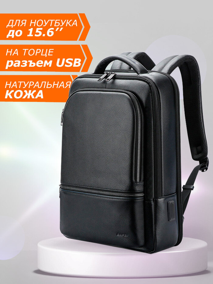 Рюкзак из натуральной кожи городской дорожный Bopai универсальный 17л, для ноутбука 15.6", влагостойкий, с USB, черный