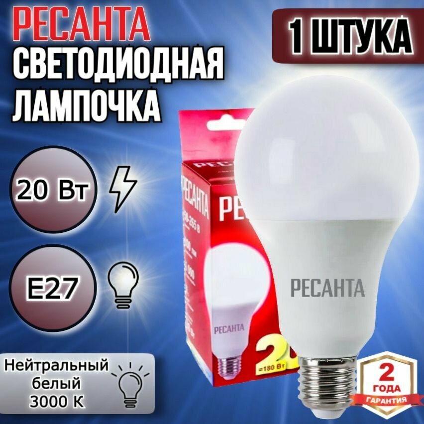 Светодиодная лампа Ресанта LL-R-A80-20W-230-3K-E27