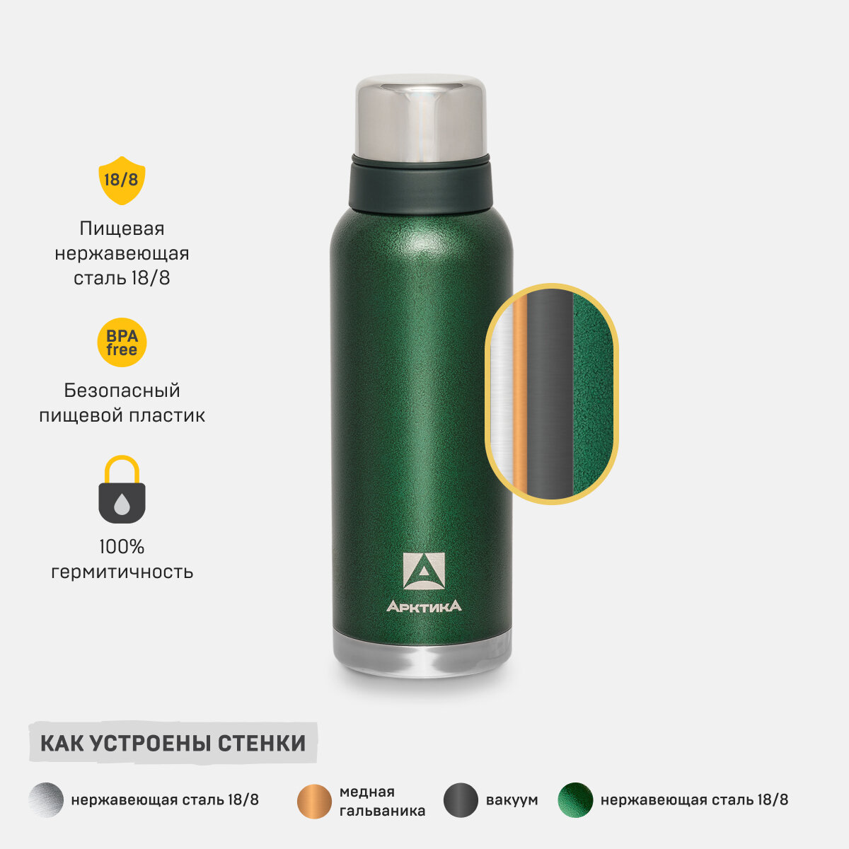 Классический термос чаша Арктика 106 C, 1.2 л, зелёный