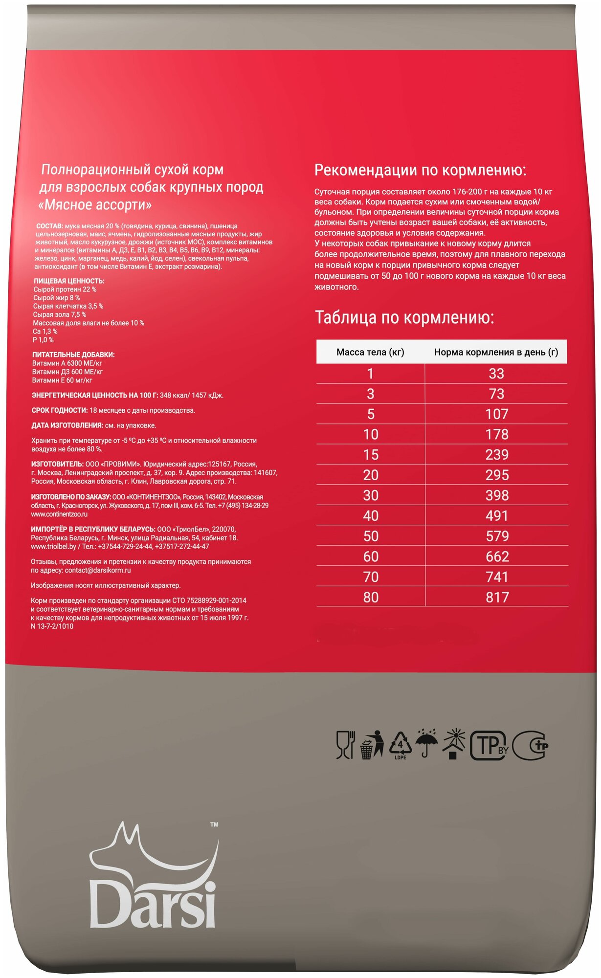 Ниже Вы можете прочитать отзывы на DARSI ADULT DOG для взрослых собак крупных пород с мясным ассорти (10 кг), ознакомится с подробными характеристиками, посмотреть интересные обзоры и фотографии на DARSI ADULT DOG для взрослых собак крупных пород с мясным ассорти (10 кг).