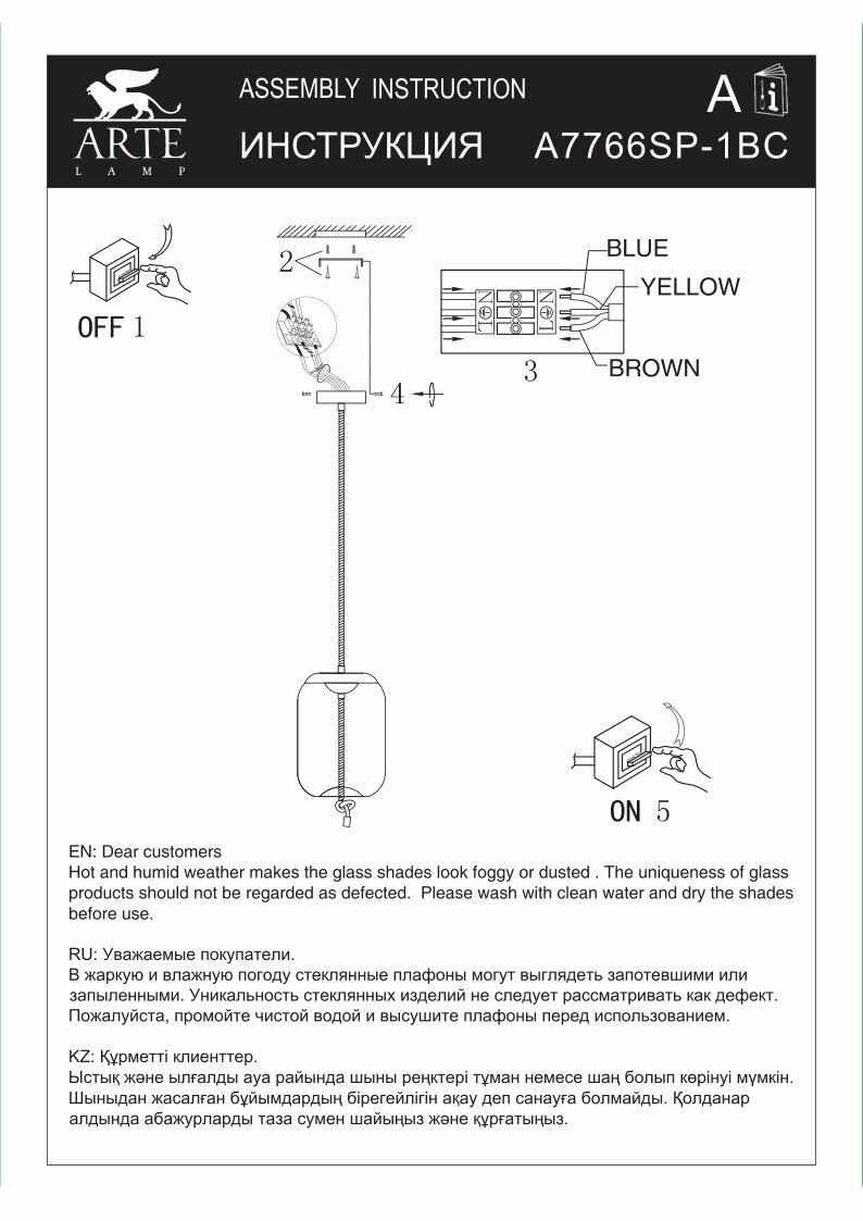 ARTE Lamp #ARTE LAMP A7766SP-1AB светильник подвесной