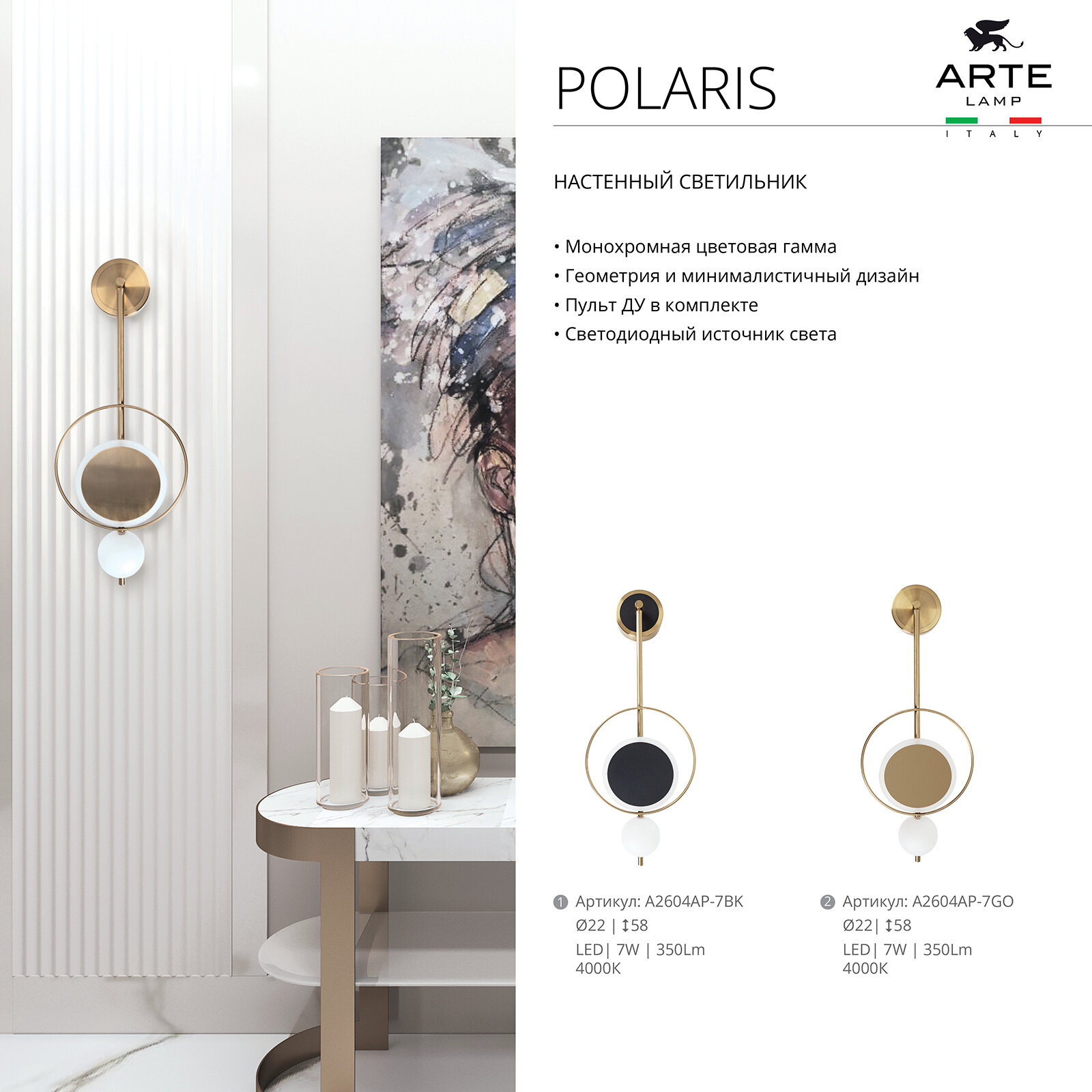 Настенный светильник Arte Lamp POLARIS A2604AP-7BK LED 7 Вт чёрный