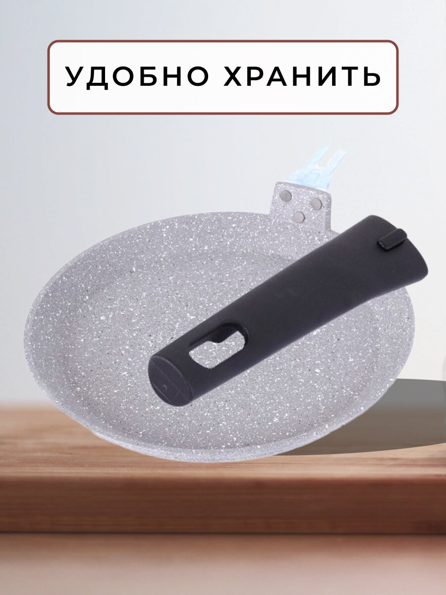 Сковорода антипригарная литая блинная 24см со съёмной ручкой Светлый мрамор ТМ KUKMARA