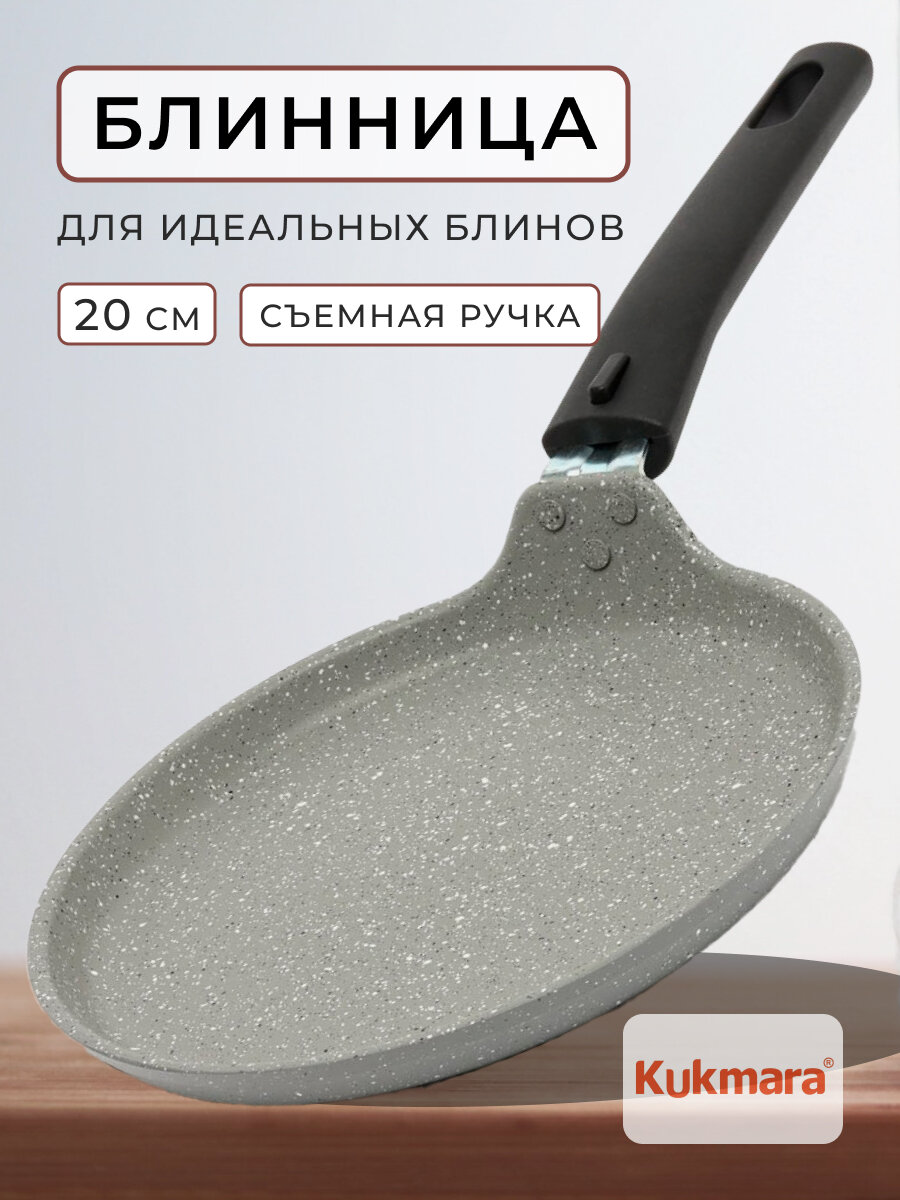 Сковорода Kukmara блинная 22см съемная ручка Светлый мрамор (сбмс220-1а)