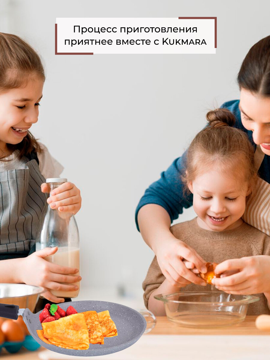 Сковорода блинная Kukmara 24 см, съемная ручка, темный мрамор (сбмт240-1а)