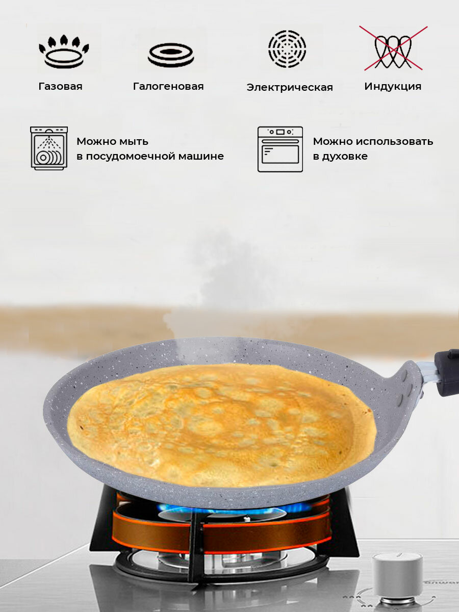 Сковорода блинная, 220 мм, антипригарное покрытие, темный мрамор