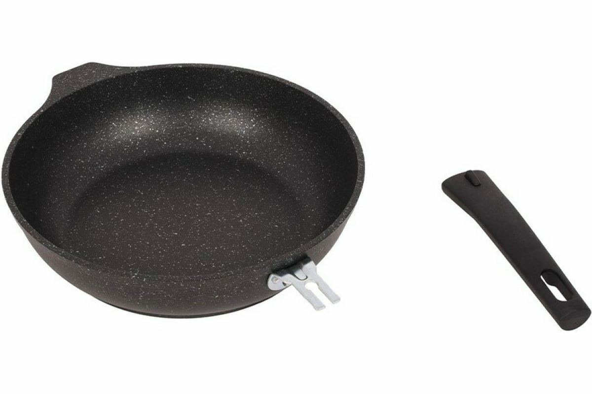 Сковорода 26см Kukmara Кукмара со съемной ручкой стеклянной крышкой Антипригарное покрытие Темный мрамор смт26604а