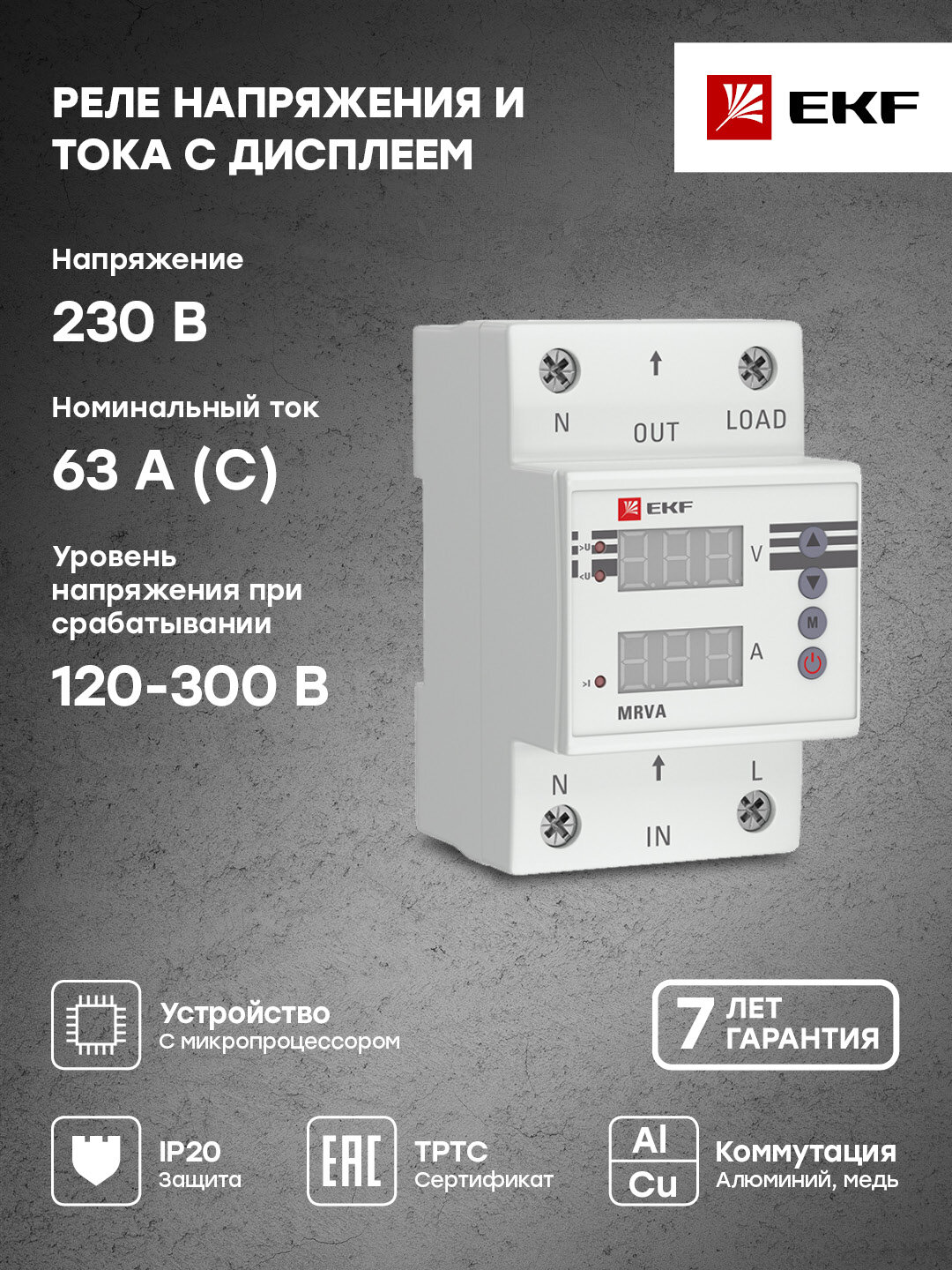 EKF Mrva-63a Реле напряжения и тока с дисплеем Mrva 63A EKF PROxima .