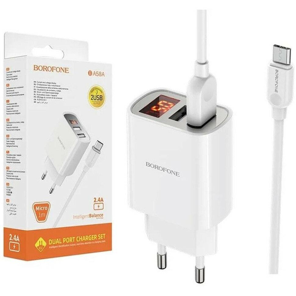 Сетевое зарядное устройство Borofone BA58A Mighty 2USB с кабелем micro-USB (белое)