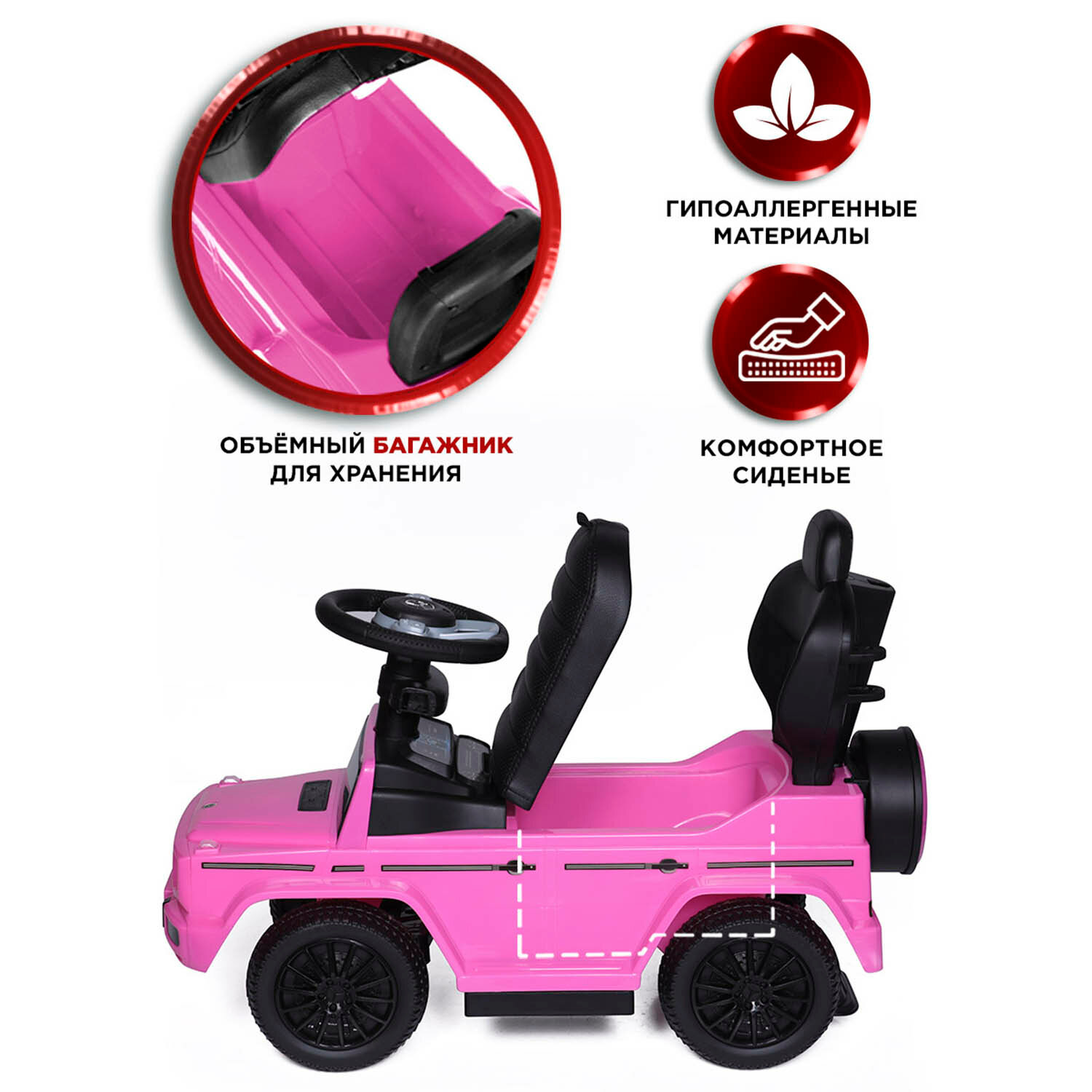 СохранитьКаталка детская Mercedes-Benz G350d BabyCare (с родительской ручкой, кожаное сиденье), розовый интересное: