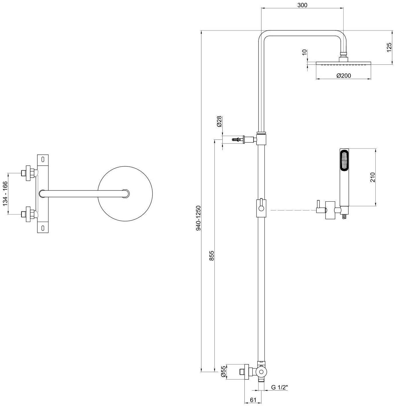 | Дополнительная информация | высота стойки для душа: 1250 мм; диаметр верхнего душа: 200 мм |