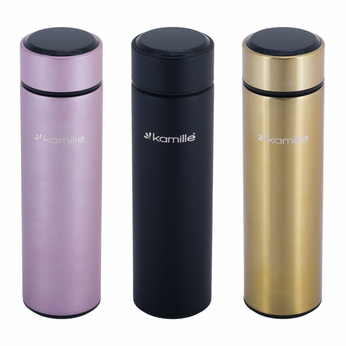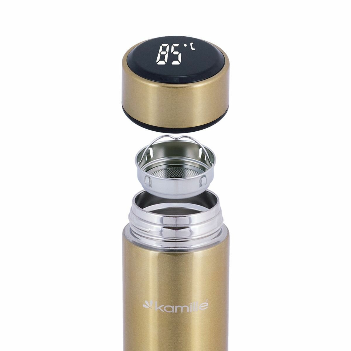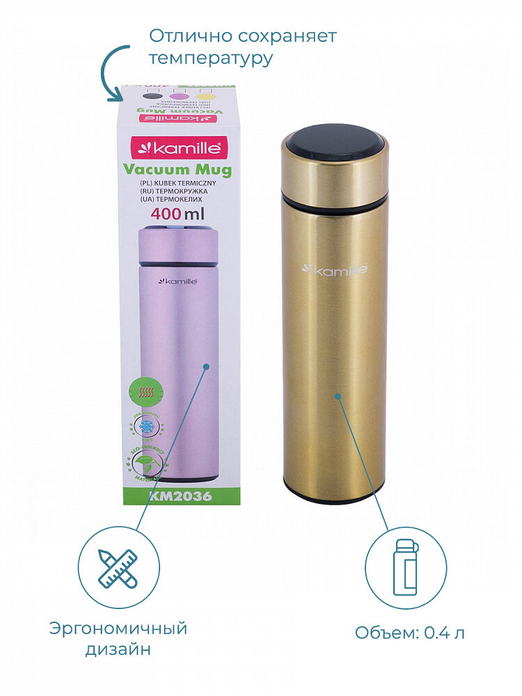 Kamille Термос из нержавеющей стали с датчиком температуры, 400 мл, золотой.