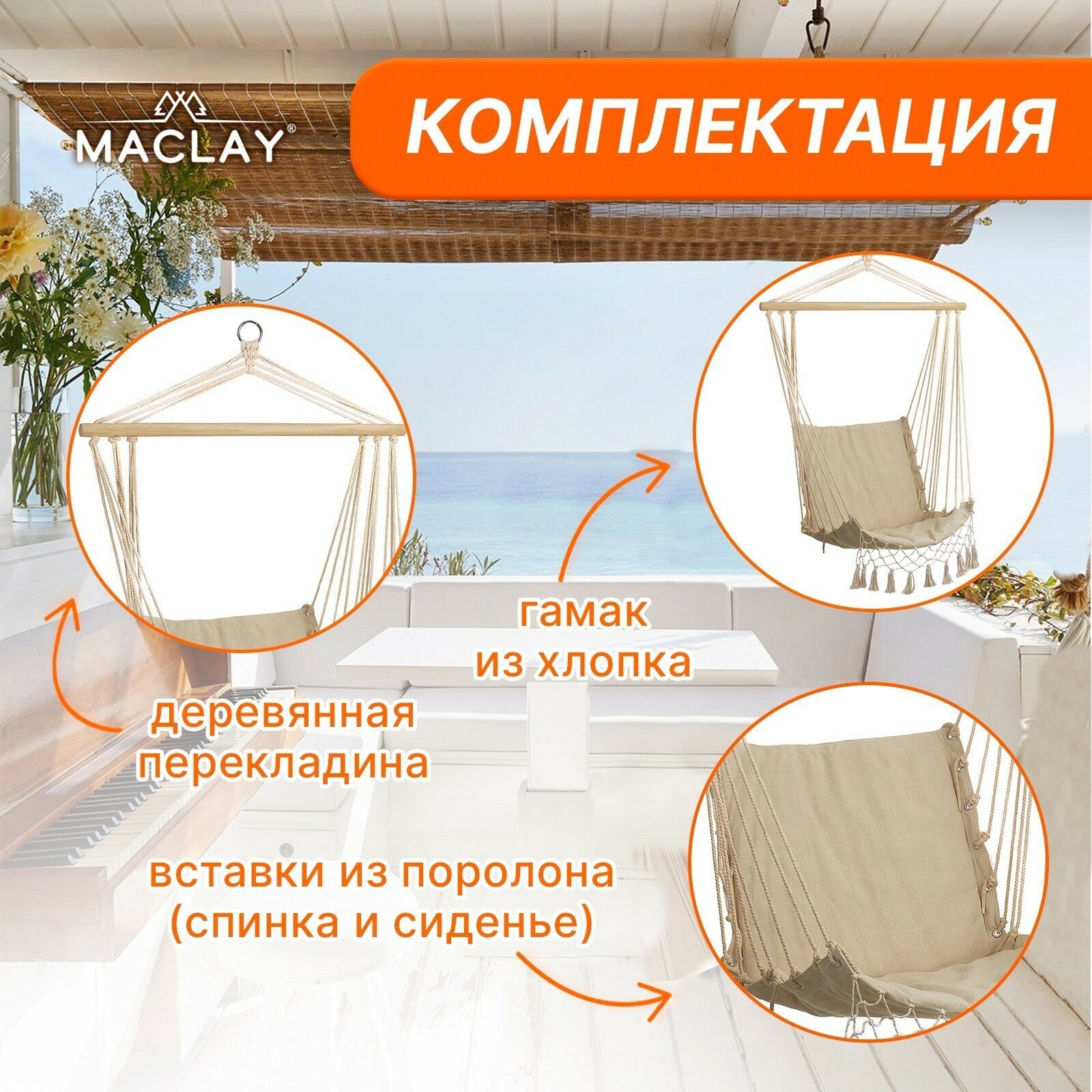 Купить Maclay Гамак Maclay М-F05, 96х50 см, хлопок, цвет бежевый
