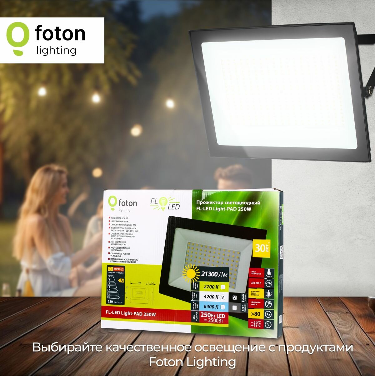 Прожектор светодиодный FOTON LIGHTING FL-LED Light-PAD 250W Black 6500K интересное: