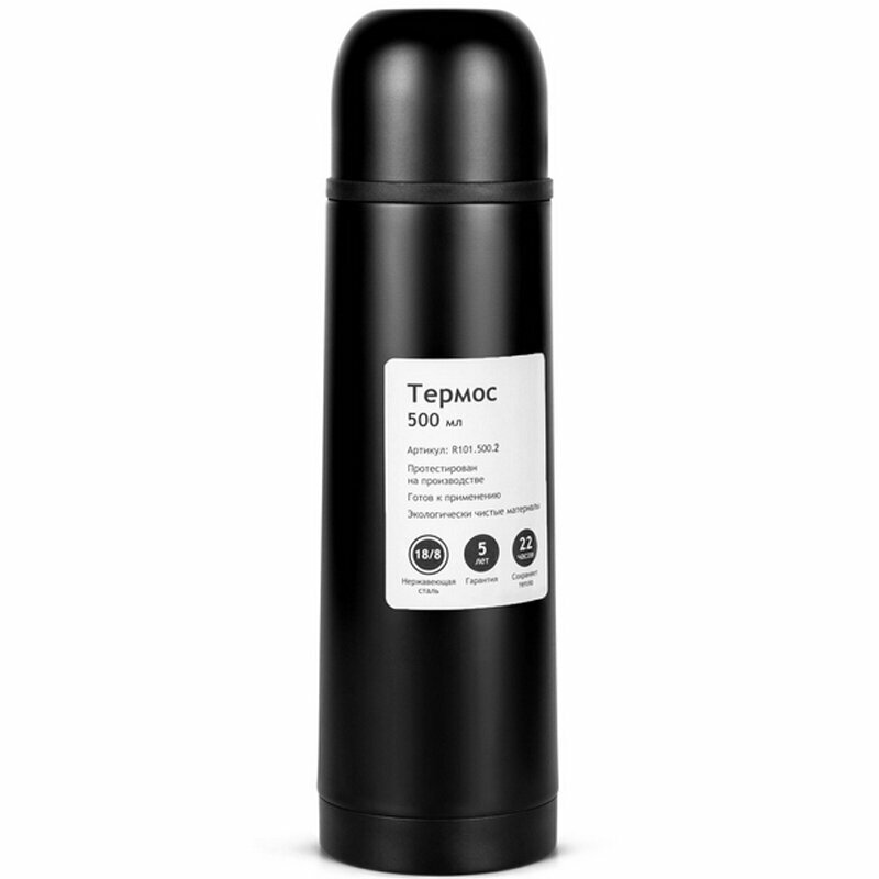 Купить Термос Relaxika R101.500.2 (0,5 литра), черный (стикерпак "Красоты России") R101.500.2
