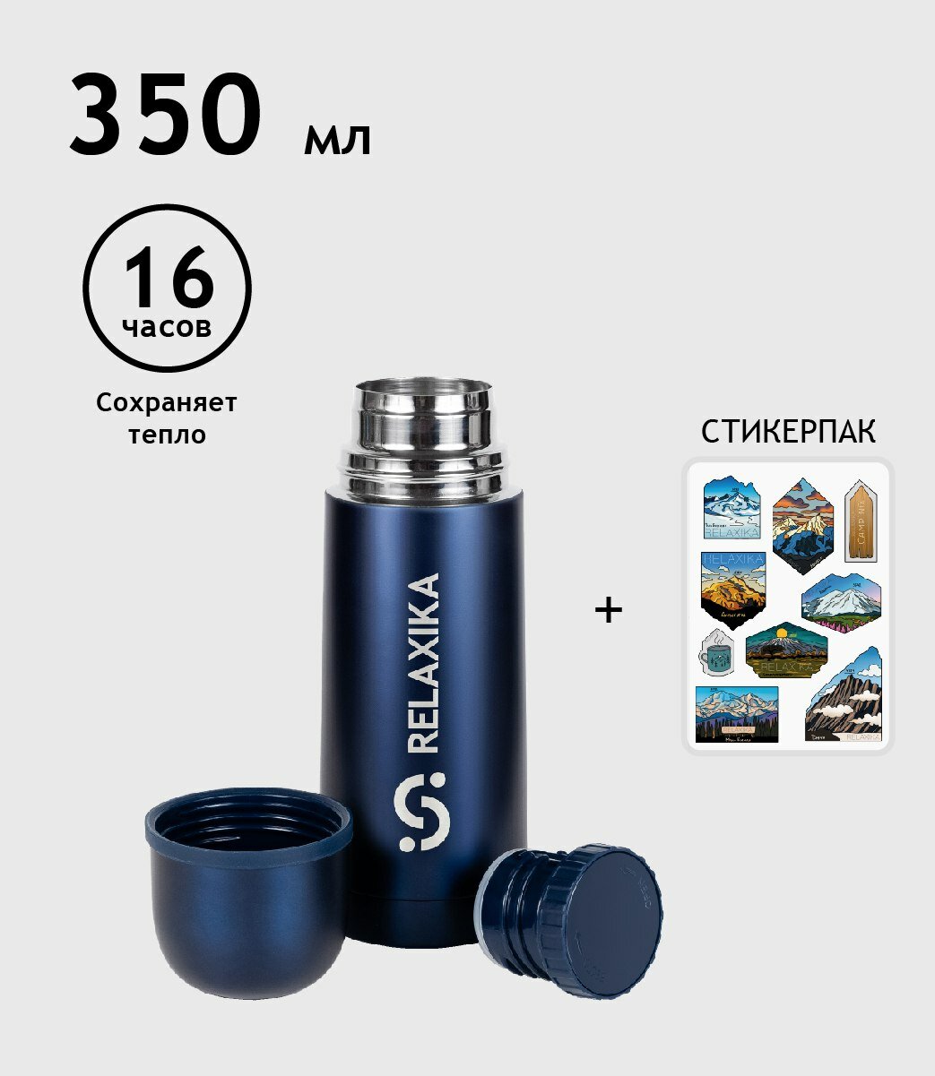 Relaxika Термос Relaxika 101 350 мл (Темно-синий (стикерпак "7 вершин"))