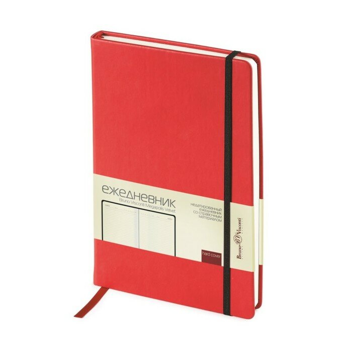 Ежедневник недатированный Bruno Visconti "MEGAPOLIS VELVET" в твердой обложке, с резинкой, красный А5 арт.3-468/06