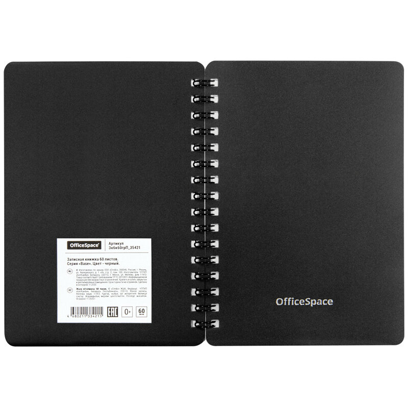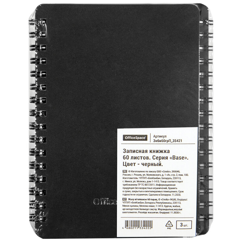 Книжка записная А6 60л. на гребне "Base. Черная" (Зк6к60грП_35421, "OfficeSpace") пластиковая обложка (1шт)