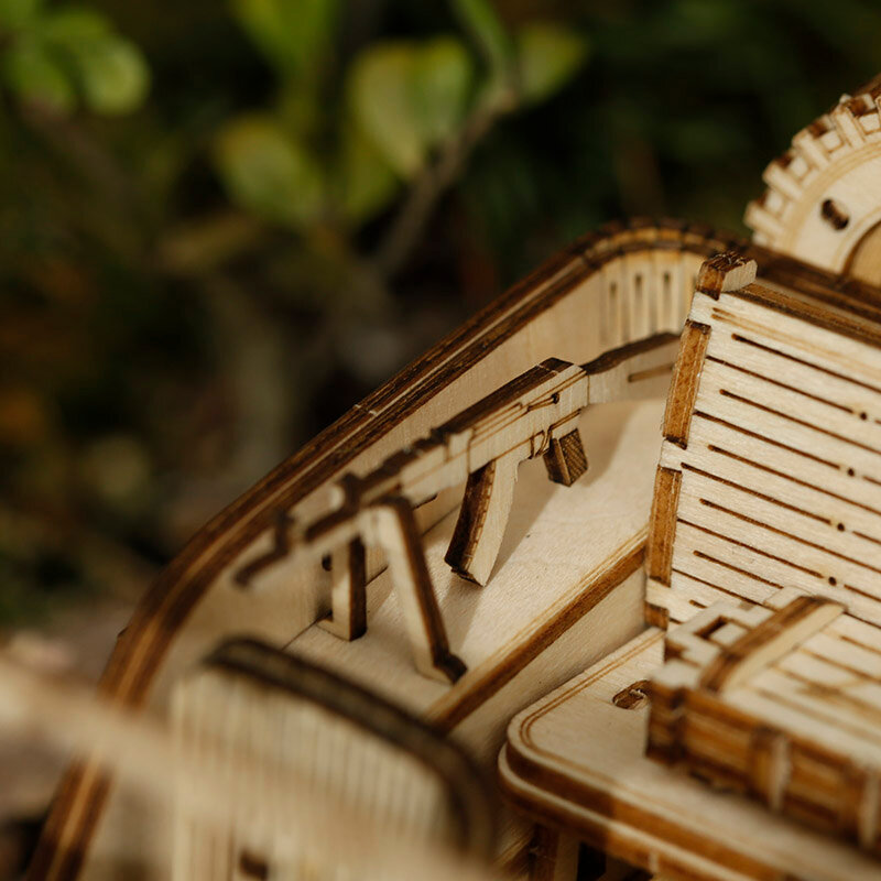 Деревянный конструктор Robotime ROKR - Армейский полевой автомобиль (Army field car); 369 дет; 18,9*9,9*8,9 см; арт. MC 701