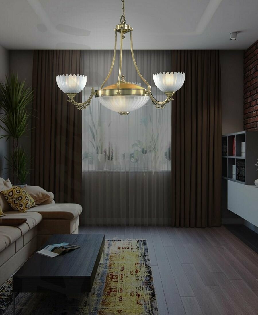 Люстра Reccagni Angelo 3030 L 3030/3+2, E27, 300 Вт, кол-во ламп: 5 шт., цвет арматуры: бронзовый, цвет плафона: белый