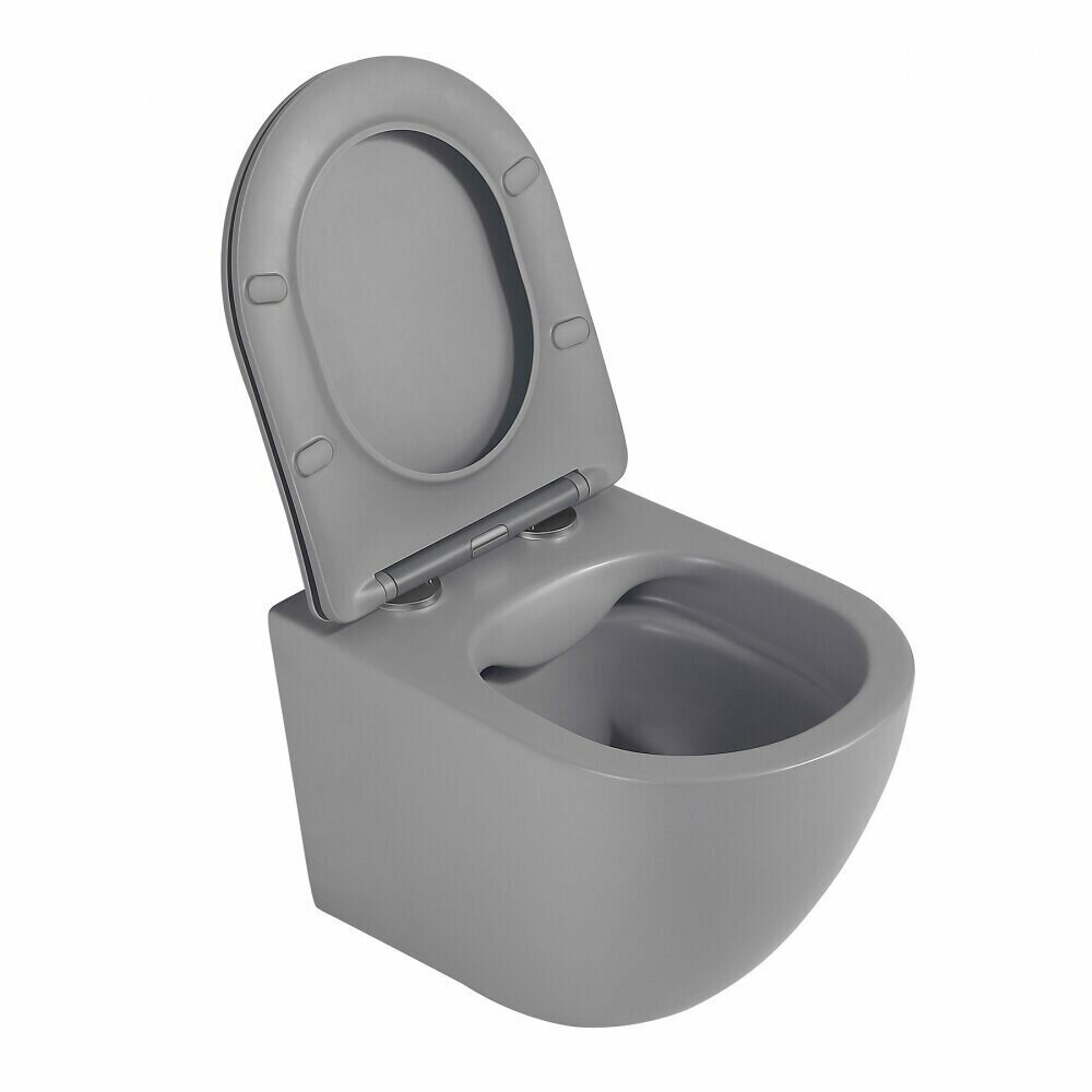 Унитаз подвесной Abber Bequem AC1101MG безободковый, с микролифтом, серый матовый