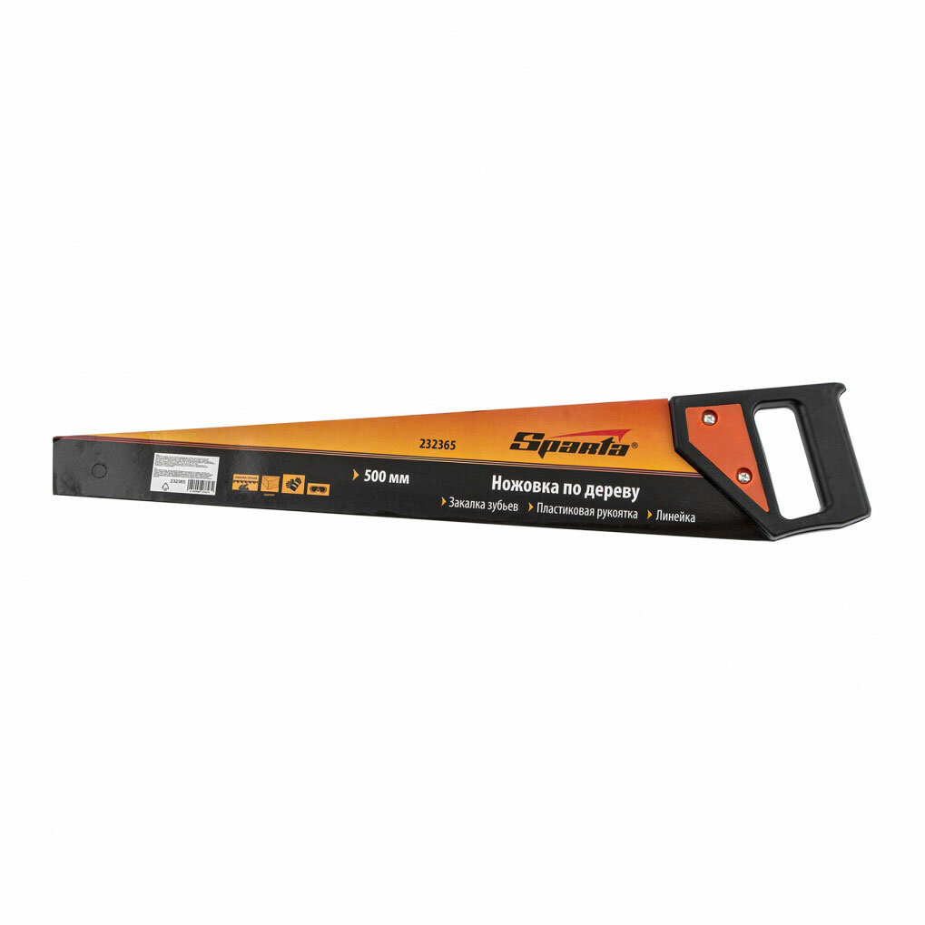 Ножовка по дереву, 500 мм, 5-6 TPI, каленый зуб, линейка, пластиковая рукоятка Sparta