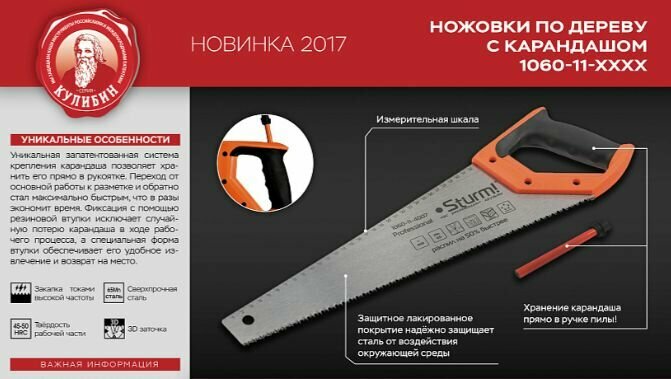 СохранитьНожовка по дереву С карандашом,450мм,7-8 зуб.на дюйм,каленый 3D ЗУБ,Sturm!, Sturm! 1060-11-4507 интересное: