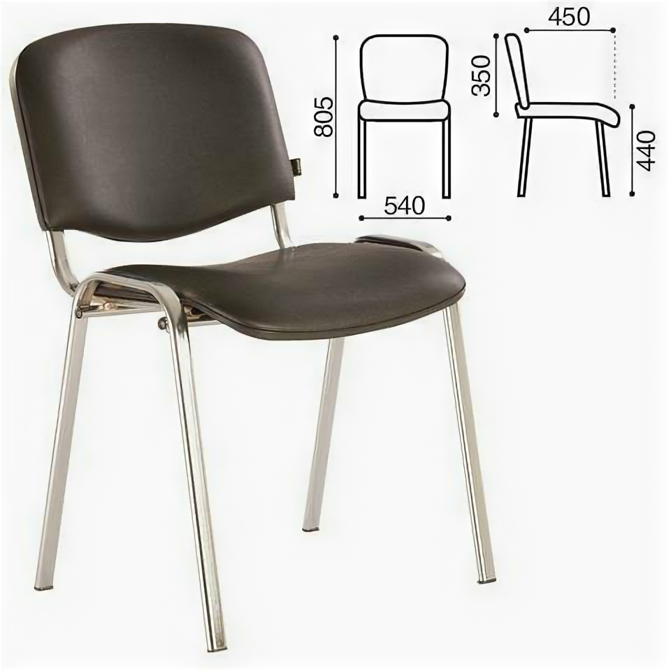 Стул для персонала и посетителей Brabix "Iso cf-001", хромированный каркас, кожзам черный (531424)
