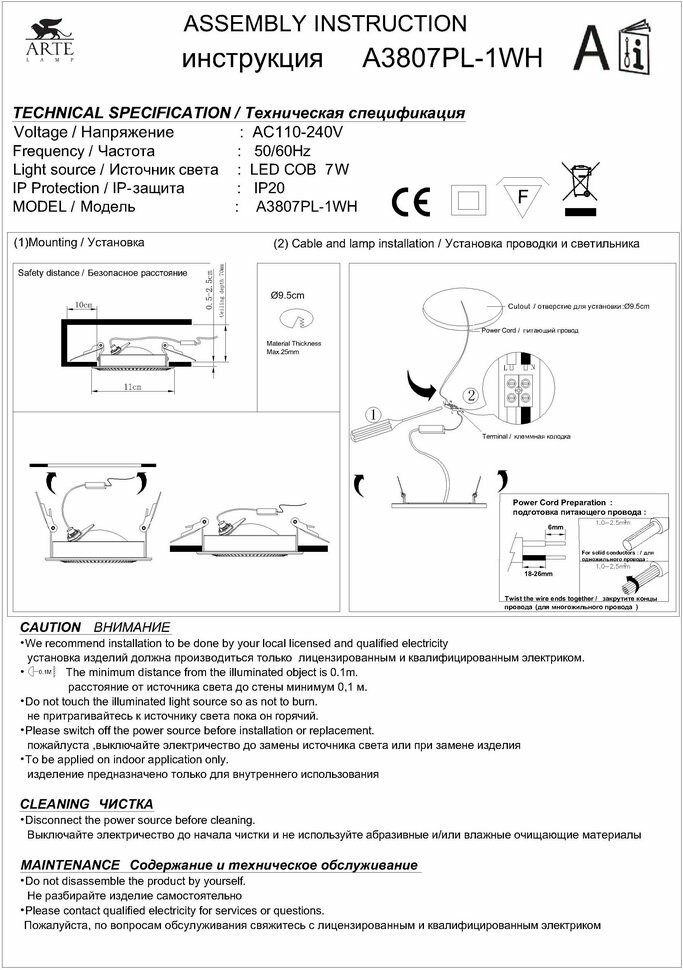 | Ширина/диаметр врезного отверстия | 95 мм |