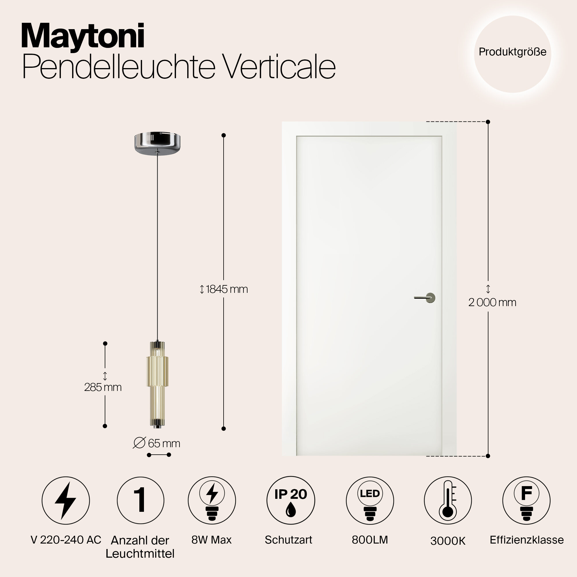 Светильник подвесной Maytoni Verticale, MOD308PL-L9CG3K, 8W, LED