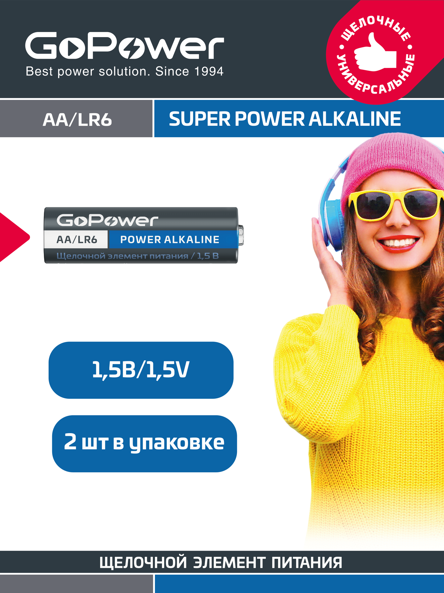 00-00019861 Super Power Alkaline Элемент питания AA/LR6 щелочной 1.5В, 2шт, GoPower