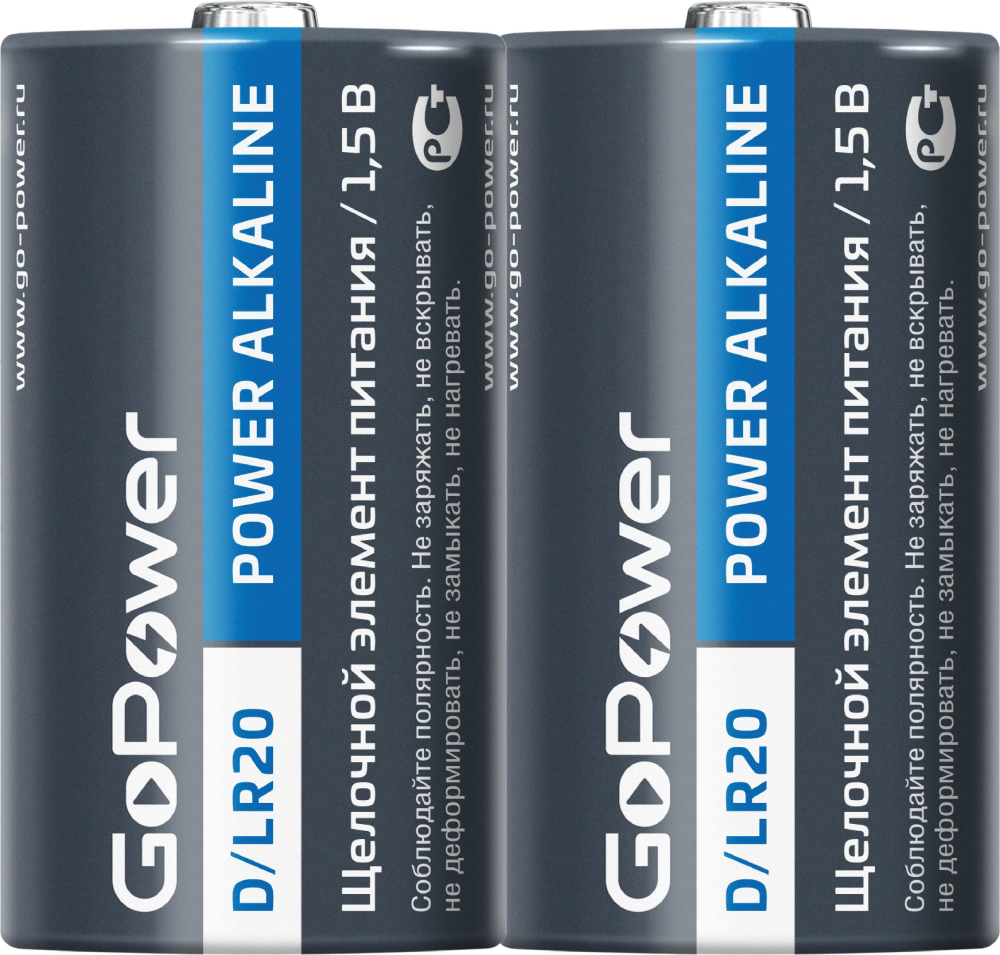 Батарейка GoPower D/LR20 Alkaline 1,5В (блистер 2 шт)
