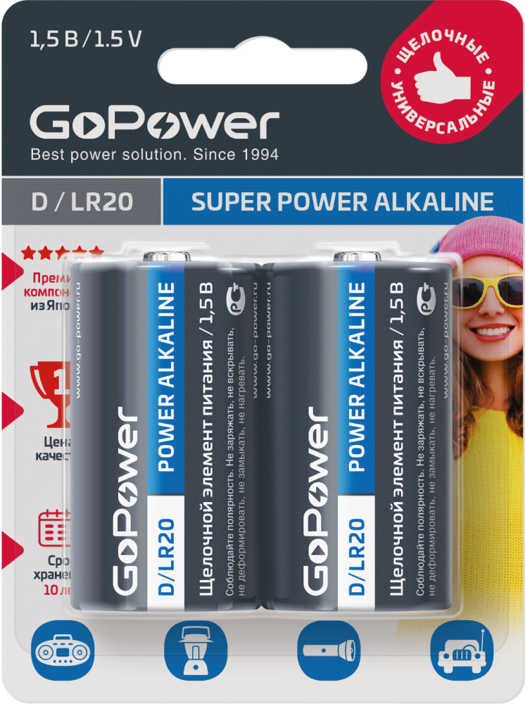 Купить Гоу Паувер / Go Power - Батарейки Super Power Alkaline D/LR20 1,5V 2 шт