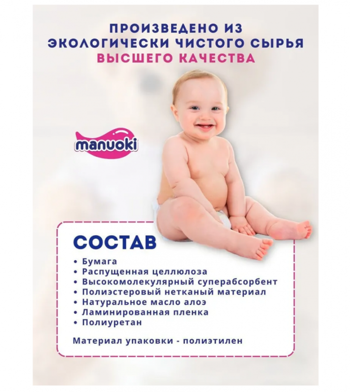 У ребёнка очень чувствительная кожа на все подгузники кроме manuoki и meris была жуткая реакция. Manuoki доступны по цене и качество на все 100%
