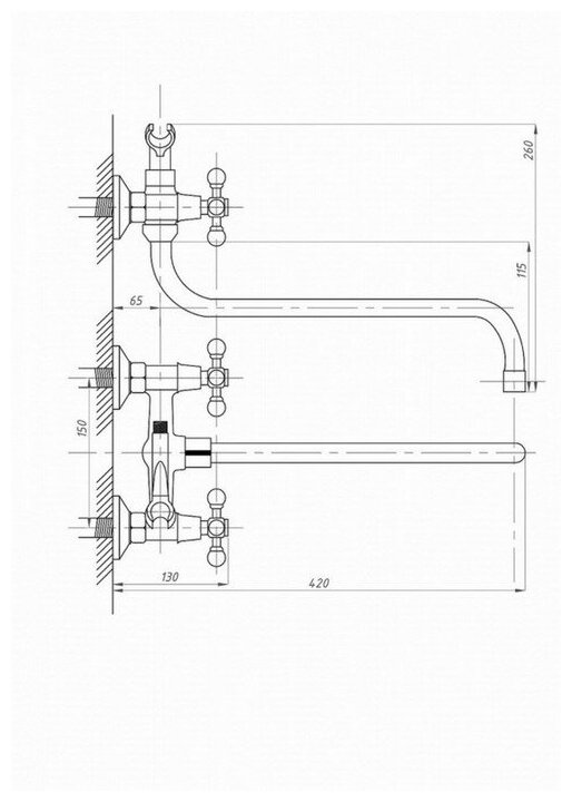 Смеситель для ванны Fauzt FZs-511-54, двухвентильный, хром