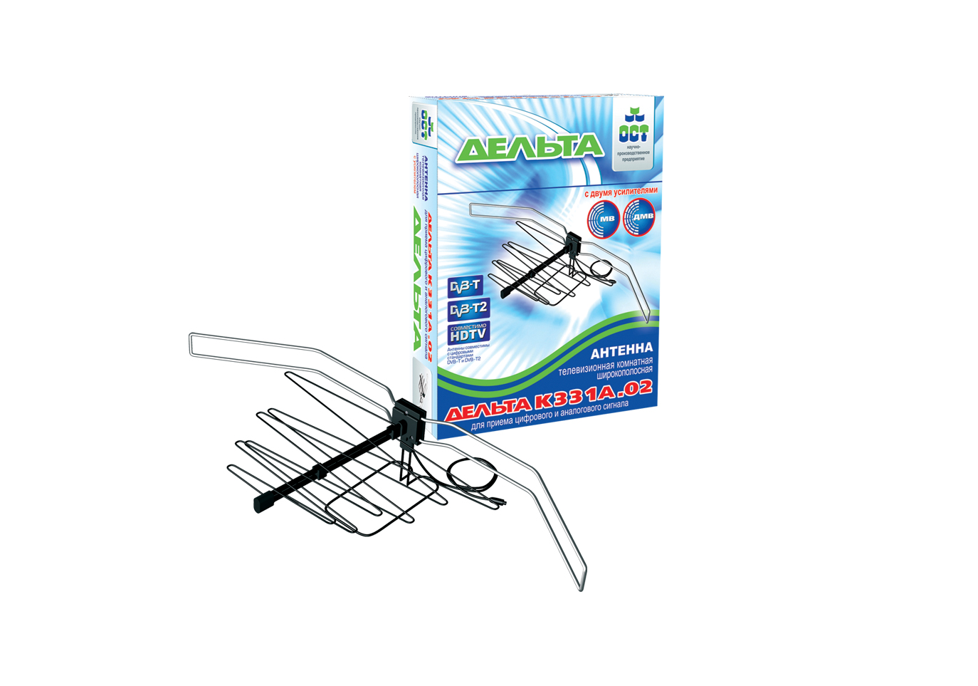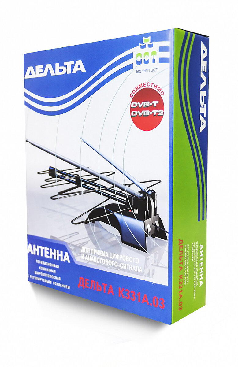 Антенны ТВ Дельта Антенна комнатная Дельта К331А.02 12V (активная, МВ-ДМВ, с б/п, 6-24 дБ, коробка)