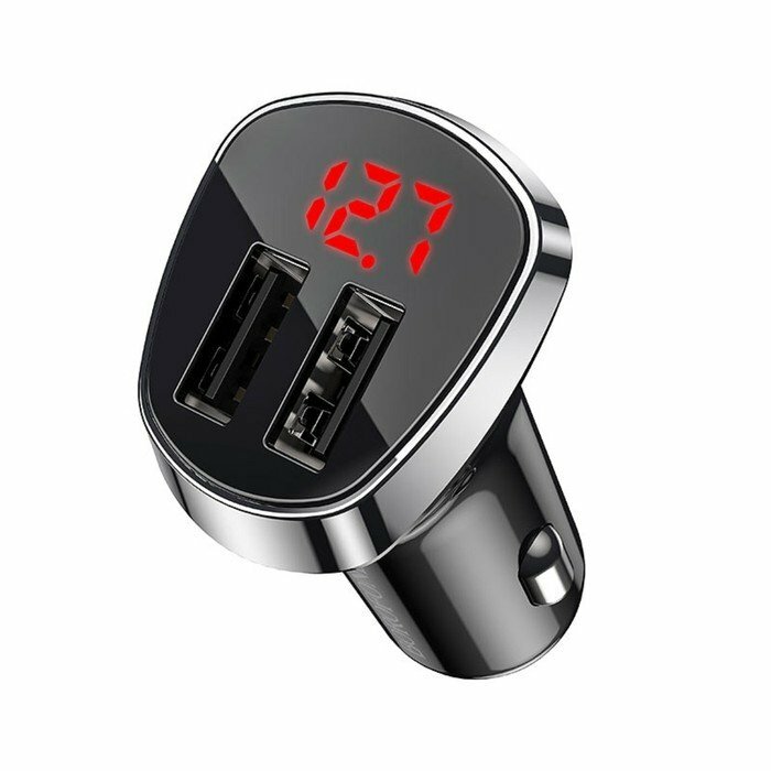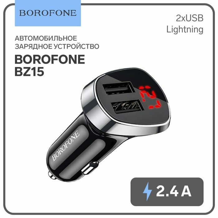 Автомобильное зарядное устройство Borofone BZ15, 2xUSB, 2.4 А, Lightning, дисплей, чёрное