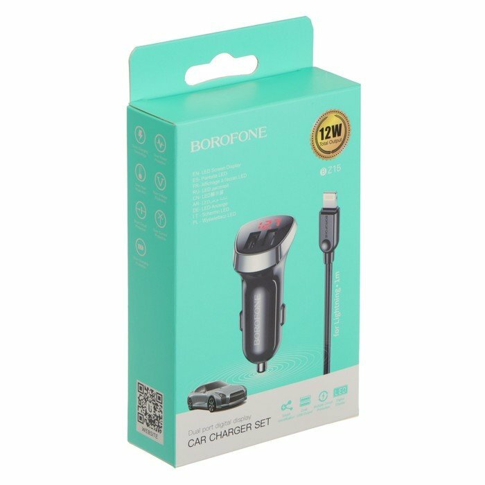 Купить Автомобильное зарядное устройство Borofone Bz15, 2хUSB, 2.4 А, дисплей, кабель Lightning, 1 7636812