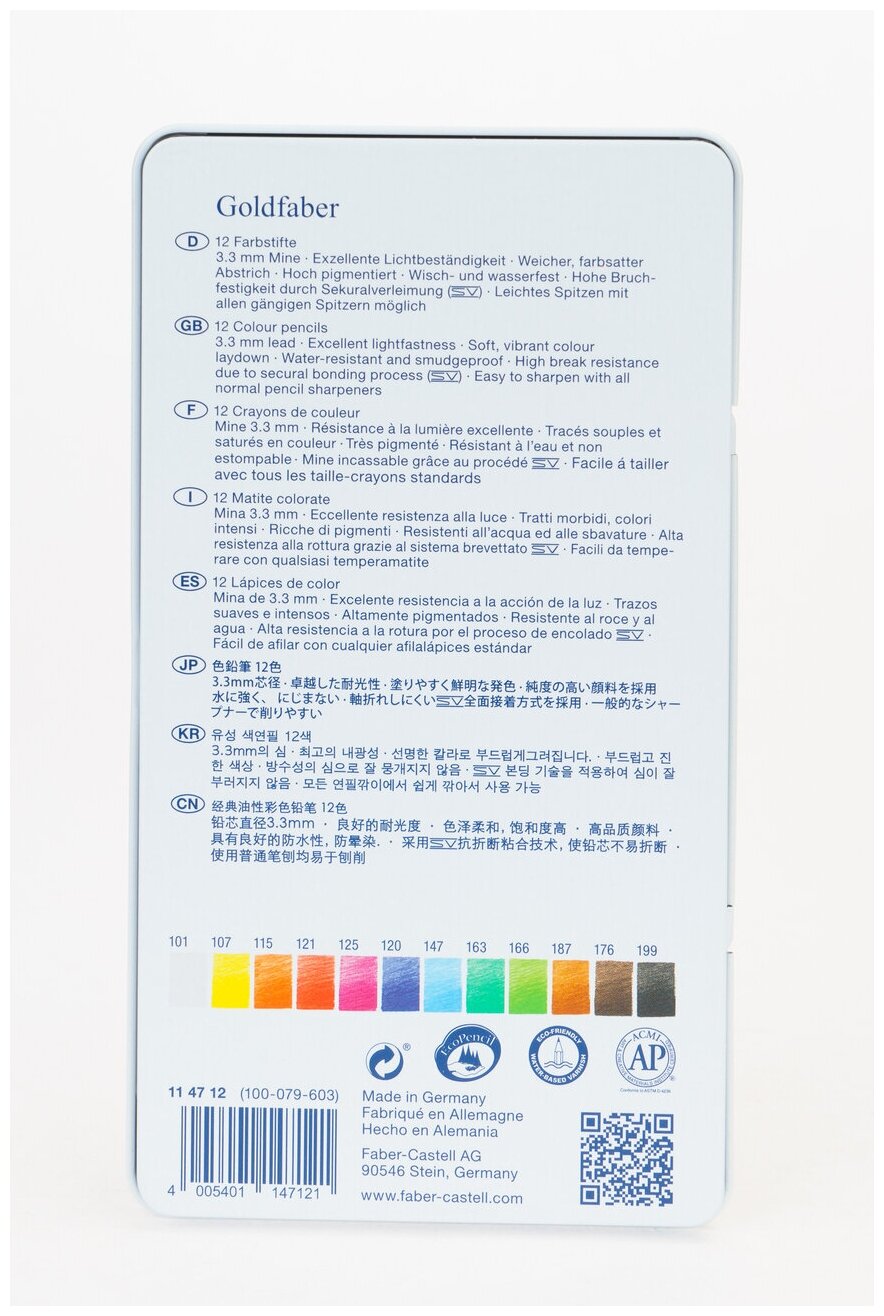 Цветные карандаши художественные для рисования / Набор карандашей 12 цветов Faber-Castell "Goldfaber" / профессиональные для художников, для творчества и скетчинга